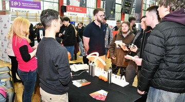 Targi Pracy to cykliczna inicjatywa Politechniki Częstochowskiej, organizowana od wielu lat, stanowiąca ważną przestrzeń do nawiązywania kontaktów zawodowych, poznawania oczekiwań rynku pracy oraz zdobywania informacji o możliwościach rozwoju kariery. Wydarzenie po raz kolejny potwierdziło swoją istotną rolę zarówno dla pracodawców, jak i osób poszukujących pracy. Dla firm targi stanowią efektywne narzędzie rekrutacyjne oraz okazję do bezpośredniego dotarcia do młodych, dobrze wykształconych kandydatów. Z kolei dla studentów i absolwentów to szansa na poznanie aktualnych ofert zatrudnienia, wymagań rynku pracy oraz nawiązanie cennych relacji zawodowych. Bezpośredni kontakt z przedstawicielami firm pozwala lepiej przygotować się do wejścia na rynek pracy i świadomie planować swoją ścieżkę kariery.